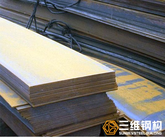 (2)钢材耐腐蚀性能差,维护费用高。用作钢结构的钢材有钢板、钢带、型钢(工字钢、槽钢、角钢)、钢管和钢铸件等。